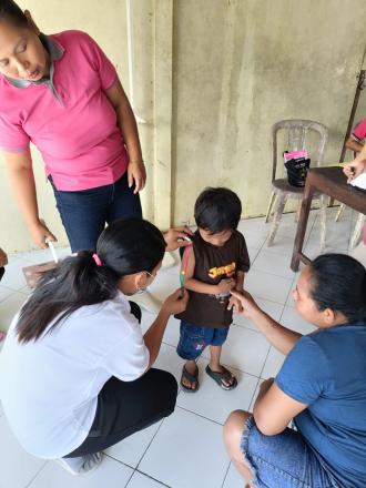 Pemberian Imunisasi: Sejumlah balita mendapatkan imunisasi rutin sesuai jadwal untuk mencegah penyakit menular.